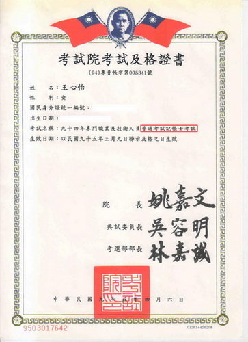 行政院勞工委員會核發中華民國電腦繪圖技術士證